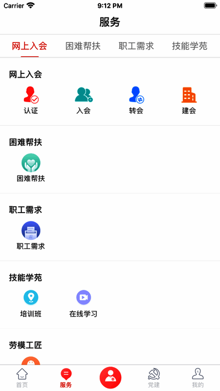 1. 平台提供网上入会、困难帮扶、职工需求反馈以及技能学苑等功能。
