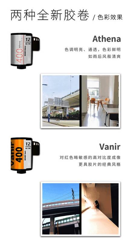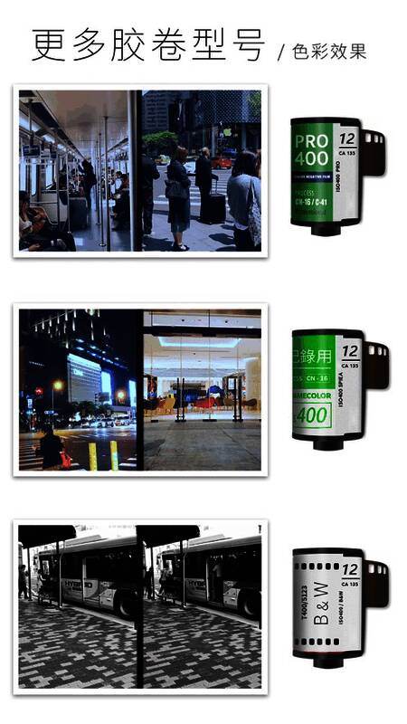 1、具备两种全新胶卷玩法,呈现不同色彩效果,带来超酷拍摄体验!