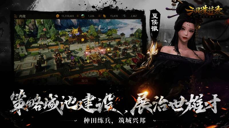 3、游戏创新策略城建玩法,可建造农田、冶炼厂、练兵场等多种建筑。