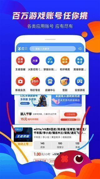 2. 提供丰富账号资源和优惠活动,热门与新游账号应有尽有,且定期推出优惠和奖励,让用户享受更多福利。