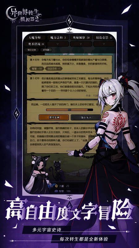 异世界转生模拟器2苹果版下载安装,这是一款令人翘首以盼的手游。其以异世界转生为主题,引领玩家开启有别于现实的精彩冒险之旅。在游戏里,你能自主挑选想要转生的异世界,化身强大角色,探寻异世界的奇妙。游戏画面精致,音效悦耳,玩法多元,让你畅享全新冒险。