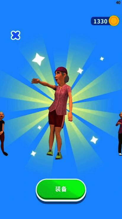 玩家通过左右滑动控制大妈团避开障碍物,选择合适的正负门扩大大妈团数量,最后点击击退敌人,把会场变成广场舞大舞台。游戏还提供各种各样的阿姨服装供玩家选择,活力四射的BGM让人玩起来欲罢不能。