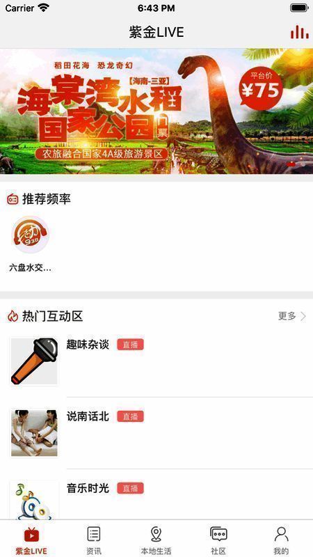 “在六盘水”APP重点打造“紫金FM”板块,实现六盘水广播所有频率的移动互联直播、回听点播全覆盖,让广播直播可视化,满足用户个性化、碎片化、伴随化收听需求,支持APP收听界面实时互动,形成专属粉丝社群。