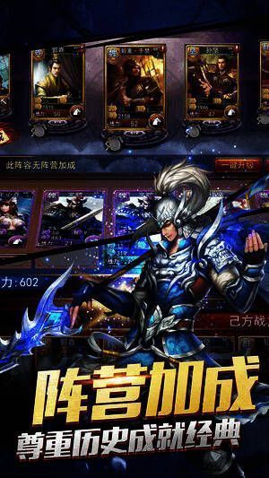 热血PVP对战,包括军团战、掠夺战、国战等,可施展武将调遣和战略布局的才能,还原八卦阵、梅花阵等经典史诗战役。