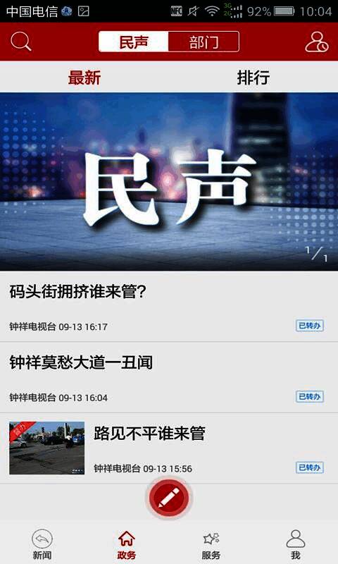 可对新闻频道进行管理,实现个性化阅读;能收藏喜欢的新闻,方便阅读查找;直接搜索部门名称,可快速找到并在线提问。