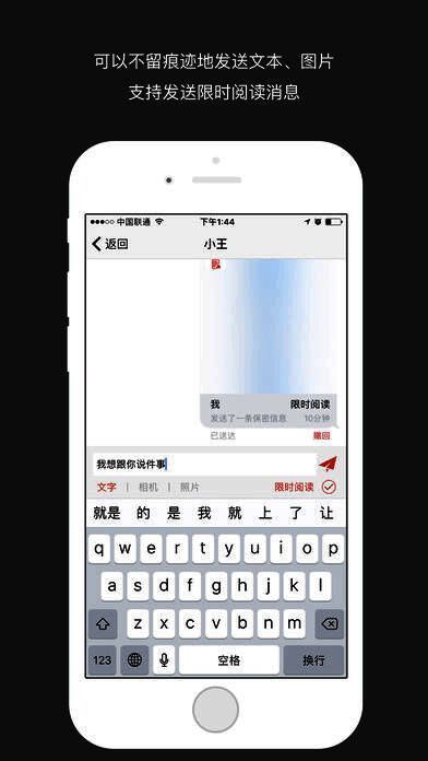 【限时阅读】发送的加密信息在10分钟内可以阅读,超过限时则无法阅读,随后自动销毁。