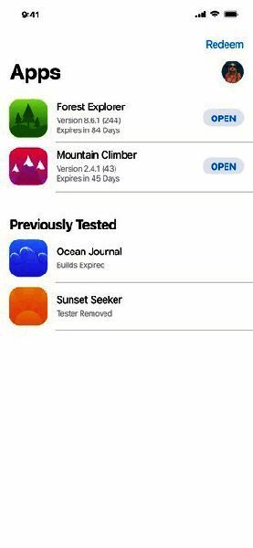 2. 受邀后,测试人员可在TestFlight中进行邀请兑换,安装、测试应用,反馈有价值信息并获取应用更新。