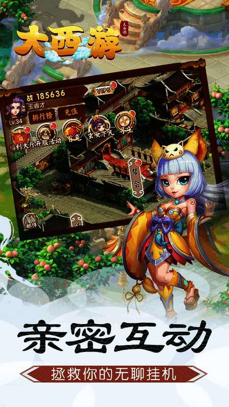2、再现西游路上孙悟空降妖伏魔的精彩历程,操作简单,通过竞技争锋、帮会激战,助玩家一路降魔。