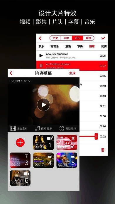 它能把你的美照运用各种视频特效,搭配喜欢的音乐和自创的文字或录音旁白,轻松制作成视频短片,方便与朋友在社交媒体分享或自行收藏。