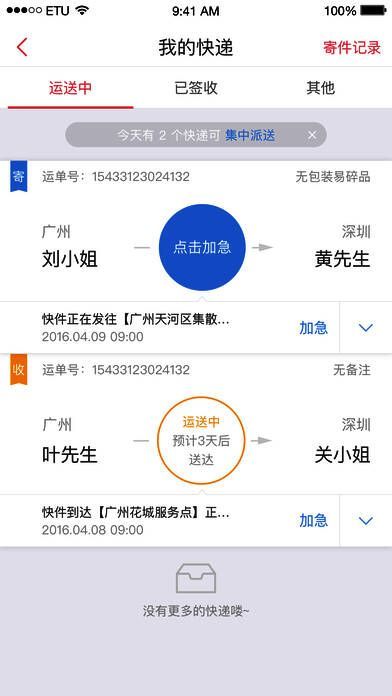 - 实时追踪:通过运单扫描、快件信息主动推送、信息转发,让您瞬间掌握快件状态。