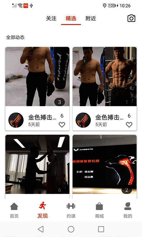 点击发现,浏览众多健身爱好者发布的生活记录。
