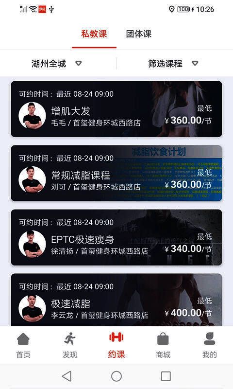 3、可在随动预约团体课,从私教课栏切换到团体课栏就能选择预约。
