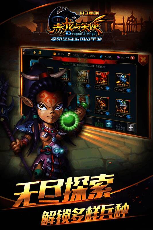 这是魔幻类策略手游,以养成兵种、布置阵容为主,战术丰富,技能酷炫,对战模式多样。有怀旧精致高画质、3D图形和悦耳音乐。玩家扮演国王发展国家,培养英雄成为中坚力量。