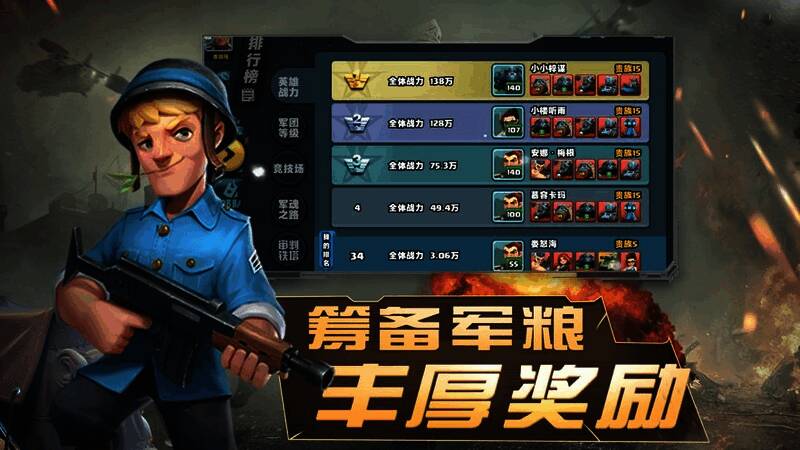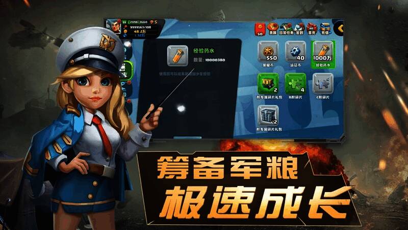 3. 招募强力军事英雄,搭配羁绊阵容,闯过更多关卡和副本。