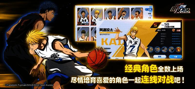游戏收录了《黑子的篮球》中几乎所有高人气角色,每位角色均根据其动画设定赋予独特技能与定位。例如诚凛队长日向顺平,作为关键射手可在危急时刻命中三分逆转战局;绿间真太郎则凭借“全域三分”能力覆盖全场,堪称远程炮台;而青峰大辉以“不可阻挡的得分手”著称,突破能力极强,是进攻端的绝对王牌。此外,赤司征十郎作为“奇迹的世代”队长,拥有“天帝之眼”预判对手动作,掌控全场节奏。
