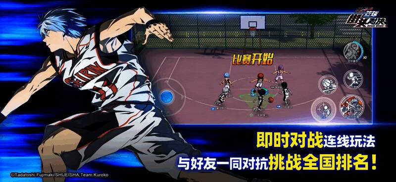 黑子的篮球:街头对决作为由日本超人气篮球动漫《黑子的篮球》正版授权改编的3v3实时竞技手游,自公布以来便在动漫迷与篮球游戏玩家中掀起热烈讨论。这款游戏不仅高度还原了原作的世界观与角色设定,更以快节奏的街头篮球对抗为核心玩法,让玩家亲身操控“影”黑子哲也、“光”火神大我,以及“奇迹的世代”全员,重现动画中那些令人热血沸腾的经典对决。