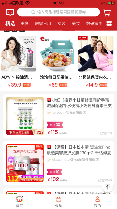 软件内置12大一级分类与87个精细化子类,从戴森吹风机到卫龙魔芋爽,从宜家收纳盒到小米充电宝,99.2%的日常需求可一键直达。所有商品均经「红喵严选」三重审核——平台资质认证、历史销量验证、用户好评过滤,确保低价不低质。更支持「同款比价」功能,实时显示各平台差价,省心更省力。