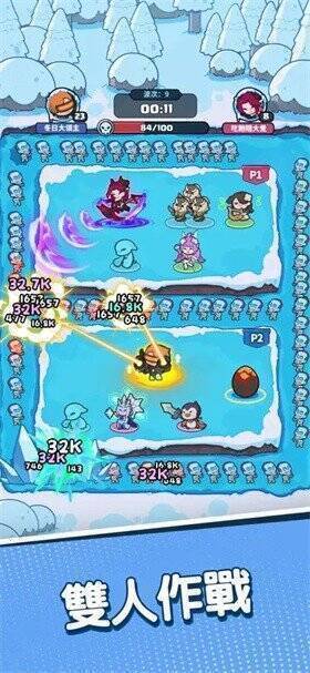 冰的啦企鹅逗阵战是一款超有趣的塔防游戏。玩家能通过双队连接进行PVE联合作战和PVP资格赛。玩家与队友各有地盘,呈上下位置摆放,僵尸军团会从左侧上下出口进攻,所以要巧妙利用双方最大火力输出点。双方可通过摧毁敌人获资源,还能依据队友选择或桌上有无英雄来放置或解锁目标史诗英雄,比单人挑战更具思考性和挑战性。