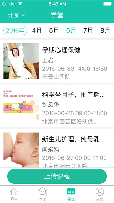 打通线上线下孕教服务闭环:全国合作医院可一键发布孕妇学校课程(如分娩准备课、新生儿护理实训),系统自动完成预约统计、短信提醒、签到核验及课后反馈收集。医生还可通过平台定向推送本院产科动态、建档指南、检查须知等实用信息,使孕妇学校从单向授课升级为双向互动健康管理节点。