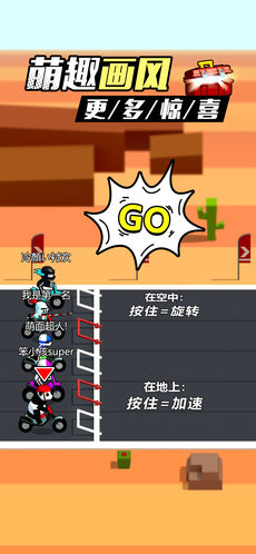 胜负不在起点,而在腾空一刻!游戏中所有赛道均暗藏「跳跃机关」与「斜坡组合」,精准点按可触发360°翻转、侧空翻、后空翻等6种特技动作;完美着陆不仅加成金币收益,更直接提升下一段直道的初始速度。数据显示,掌握特技连招的玩家通关效率提升47%,赛事胜率高出普通玩家2.3倍。