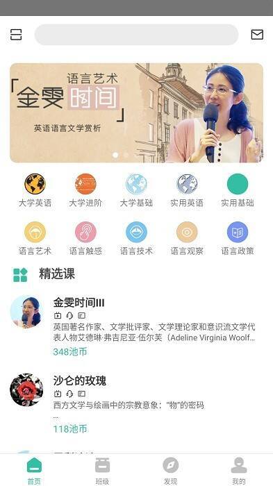 邀请国内外知名教授和教师,通过文本、音频和视频分析英语、西班牙语、德语、日语等语言的文学、语言和文化,提升语言艺术水平。