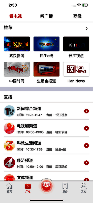 5、直播:涵盖武汉本地电视节目、5套广播节目。