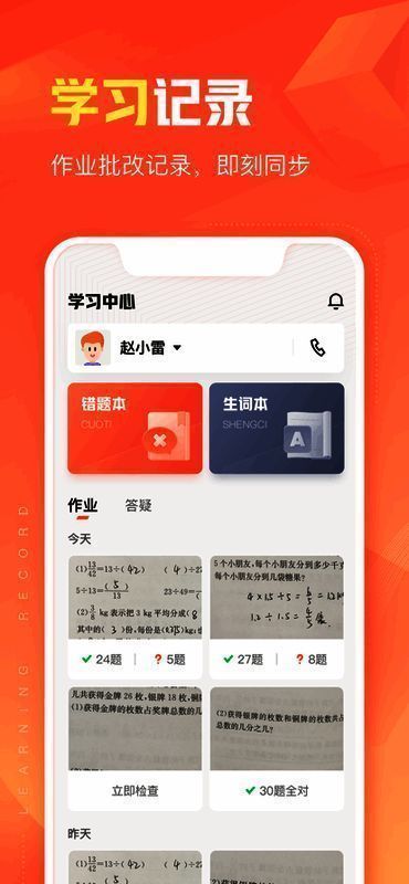 孩子的学习记录,像答疑、交作业情况会即时同步到 App,每周生成学情报告。孩子不会的中英文单词能收藏到生词本,方便家长了解语言学习难点并针对性辅导。家长可便捷绑定/管理作业帮全科学习笔等智能硬件设备,还能多台设备接入同一 App 统一管理。