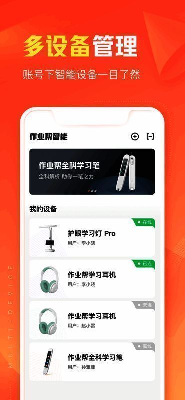 作业帮智能专为家庭作业帮助智能硬件用户打造,可实现设备管理、学习情况了解、家长控制等功能,欢迎有需求者下载使用。