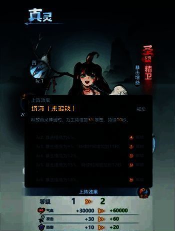 Tips:真灵所携带的暴击加成并非拥有真灵就可以获得加成,而是需要上阵并且真灵达到一定等级解锁被动