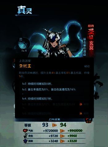 玄冥(稀有):释放真灵神通时,提升主角4%暴击率和8%暴击伤害,持续8秒