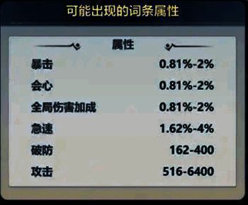 反虚洗练每件装备可洗练出的暴击加成范围:0.81%~2%