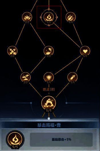 技能5级:释放技能后使自身暴击提高1%,随等级提升暴击随之提升,最高叠加10层