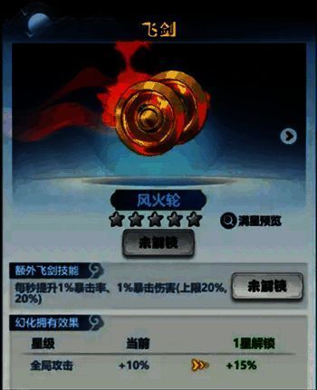 飞剑中的风火轮在使用该飞剑技能时每秒提升1%暴击率