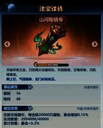 获取途径:龙渊泽的法宝探索有概率探索到成品和碎片