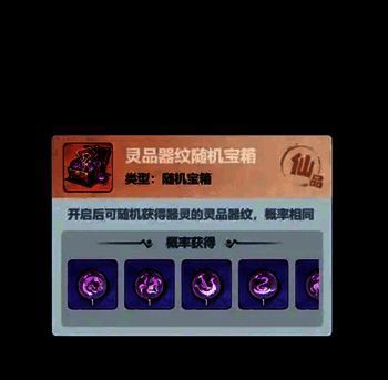 包含暴击的器纹有极品(0.5%)、灵品(1.5%)、仙品(5%),有仙品必优先上仙品器纹