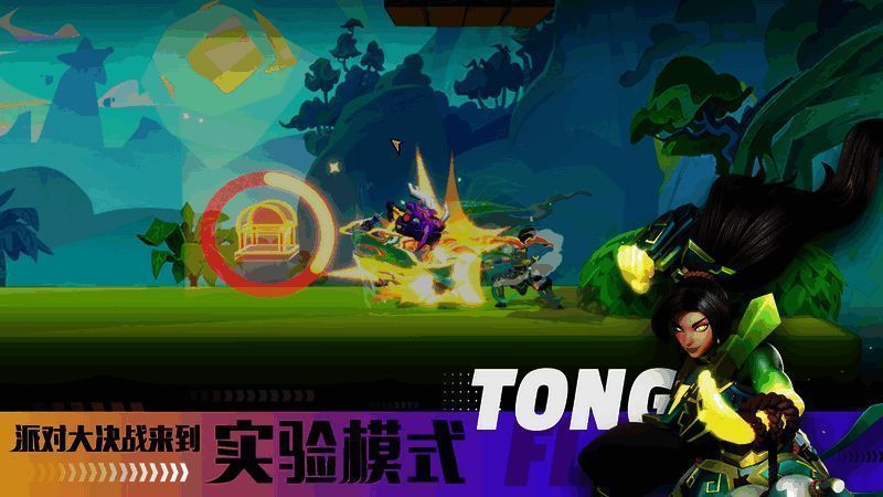 实验模式中的【派对大决战】也会正式上线1.0大版本。全新的吃鸡模式支持10人单人对决,玩家在游戏过程中,可以寻找宝箱获取其中的宝物增强实力,为对局增加了更多的随机性;也可以选择利用地图上的草丛、弹簧跳板等机制获取地形优势,打对手一个措手不及,让游戏体验更加充满趣味性。