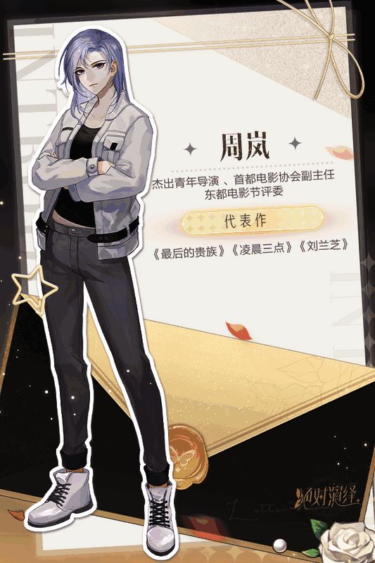 周岚,首都电影协会副主任、东都电影节评委。擅长女性主义电影,以表现手法细腻,画面唯美著称。你曾在电影试镜时与她有过一面之缘,想起她给你的评价,鞭辟入里又十分中肯,这次一定也能与你碰撞出不同的火花~