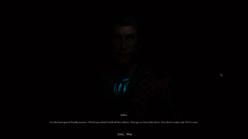 第三个任务位于Skingrad市,与大厦的看门人Fafnir交谈,他会告诉你,你将被锁在一个有5名受害者的房子里。你需要把他们都杀了,最好不要被人发现。一个简单的方法是等到所有的受害者都上床睡觉,然后在他们睡觉的时候杀了他们。