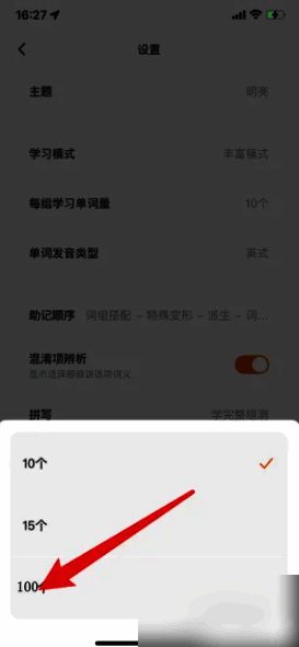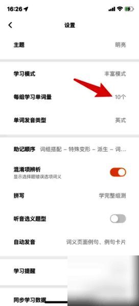 《不背单词》设置每组学习单词量方法: