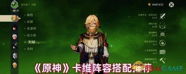原神卡维阵容怎么搭配,卡维阵容搭配推荐,更多相关游戏攻略,请关注3DM手游网!