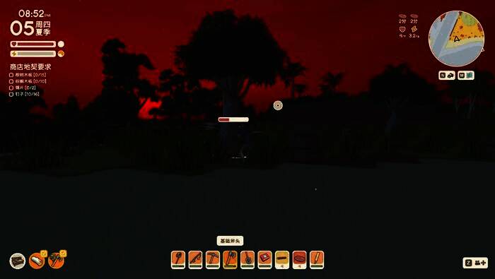 游戏中有时间的概念设定,NPC只在白天经营商店,而玩家虽然可以从早忙碌到晚,但到了深夜之后就会有疲劳惩罚,耐力最大值下降到极低,强迫玩家睡觉。睡觉可以进入结算界面,统计玩家今天做的事情来获得不同行为的经验,存档并来到新的一天。