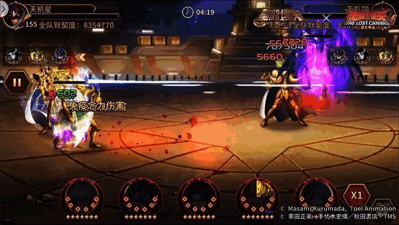 敌方阵容:双鱼座·雅柏菲卡、天暴星·辉火、神话·潘多拉、巨蟹座·马尼戈特、处女座·阿释密达