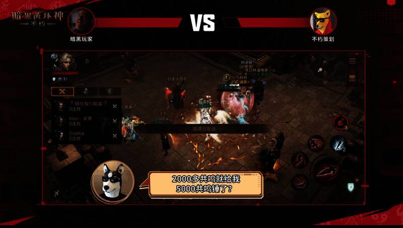对局开始,玩家迎战!仅仅第一回合,策划便连续两次败给同一位玩家,这才发现玩家实力深不可测。之后策划更是在拥有全身豪华装备的情况下,输给一位共鸣度2000出头的玩家。大量技能连续控制、高额伤害一套击败、空技能被抓住机会......在接下来的对战中不朽策划倾情出演“败北的100种方式”。
