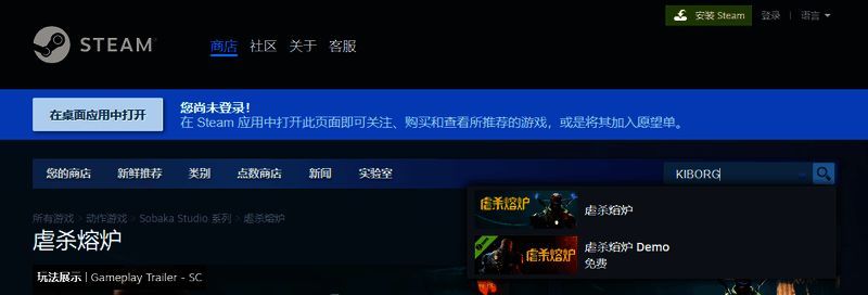 《虐杀熔炉》这款游戏在steam上的名字就叫“虐杀熔炉”,英文名叫“KIBORG”只需要在steam搜索框直接搜索就行了。