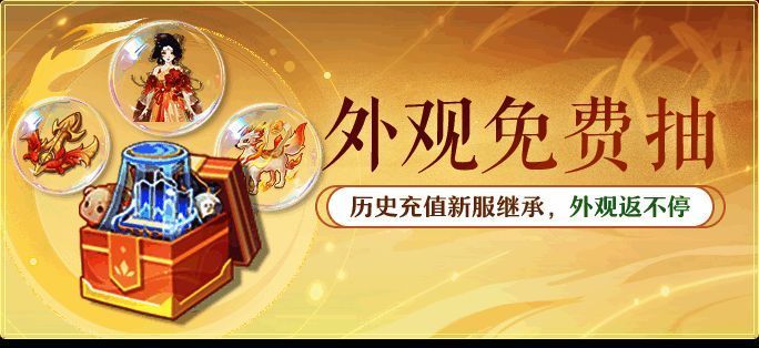 ◆历史充值返外观宝箱:新服根据账号历史充值可得外观宝箱,可抽取包含武饰、坐骑等众多外观奖励,机不可失!
