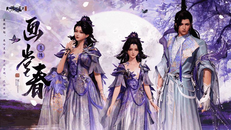 全新国风花鸟主题外观【圣绣·画堂春】翩然登场。锦绣裁云,绫罗曳地,淡雅紫色花纹似把江湖诗意绣于衣袂,流动间尽显古典雅韵,檐角铃动春风暖,墨染裙裾暗香浮。