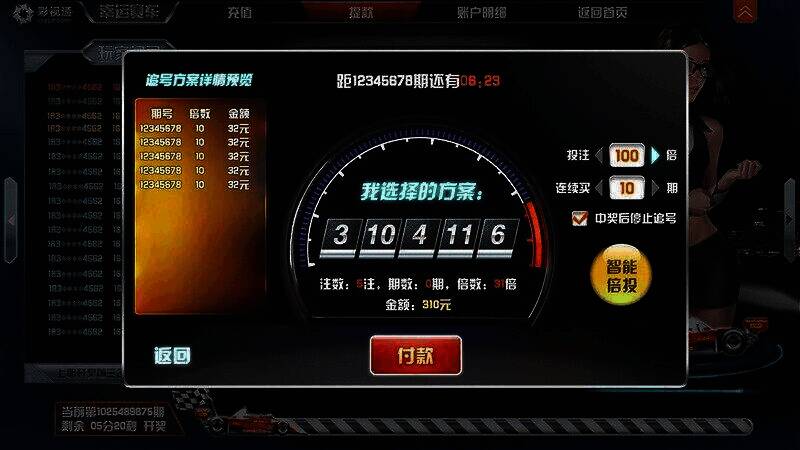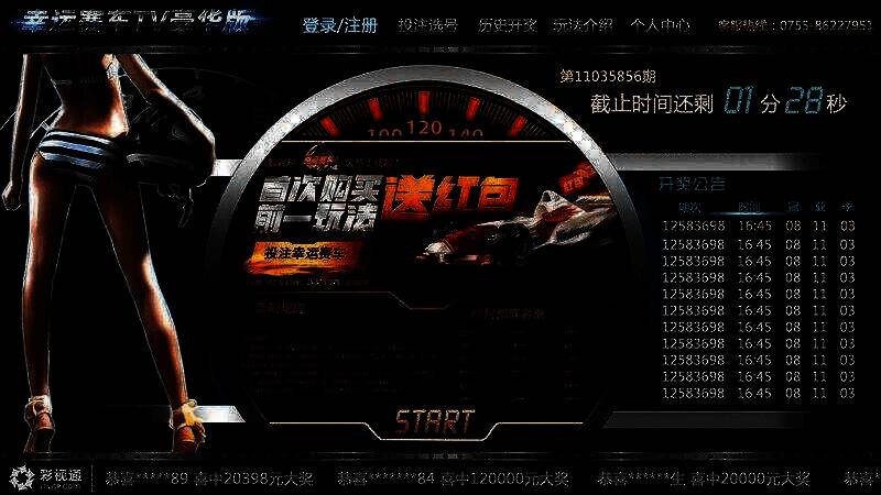 幸运赛车TV豪华版,是一款模拟F1赛车竞速的彩票游戏,和香港赛马有着相似之处。它观赏性佳,可自主竞猜,有多种投注方法,还将彩票游戏与电视宽屏相结合,集娱乐性、趣味性、即时性、运动性、直观性和刺激性于一身。玩法简单,电视大屏展示的开奖过程逼真刺激、扣人心弦。游戏设置12辆虚拟赛车竞速,竞猜冠军,投注还有赛车美女助力中奖。猜中即中奖,返奖率高达59%,每10分钟开奖一次,每天有84次中奖机会。