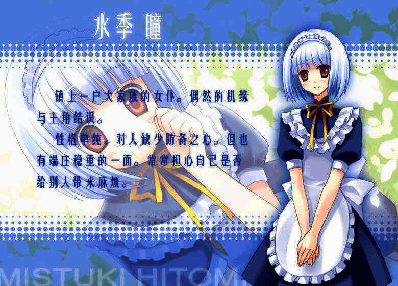 官方第一版故事介绍(2009年4月公开):一个被遗弃的小镇,宛如被世人遗忘的记忆之城。游戏CG里,突然频发的连续杀人事件,打破了小镇表面的安宁祥和。小镇尘封的记忆,因夏日的接连惨剧再度被唤醒。歪曲的认知、嗜血的疯狂,让小镇的日常逐渐走向崩坏。而你,一直在苦苦追寻着深爱之人那渐渐模糊的背影,从未放弃。