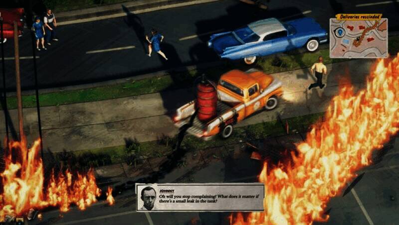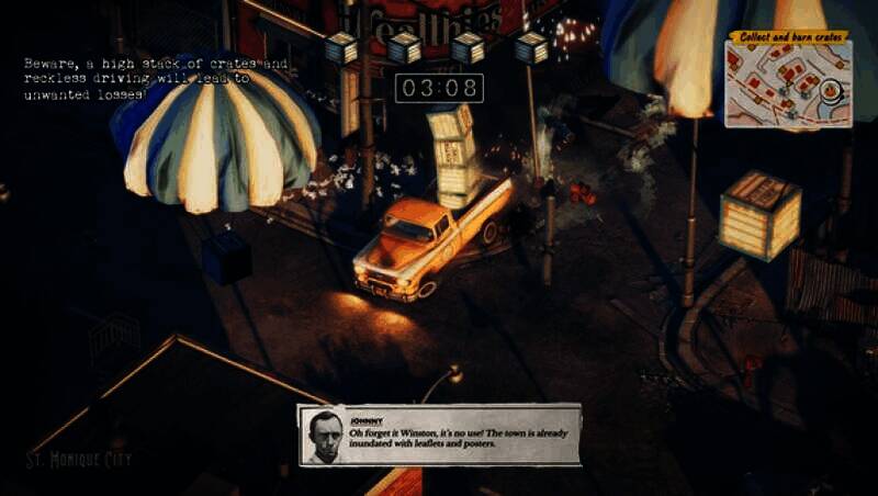 故事设定在1959年那个摇滚乐与核恐慌相互交织的复古架空世界。玩家所扮演的温斯顿·格林,为了偿还债务,无奈接受神秘组织委托的特殊运输任务。这些货物,无论是随时可能爆炸的巨型炸弹,还是剧烈挣扎的深海生物,都暗藏着巨大危机。随着任务的逐步推进,温斯顿渐渐卷入一场跨越时空的阴谋之中,他的疯狂举动和混乱破坏,正一点点揭开小镇平静表象背后的黑暗真相。