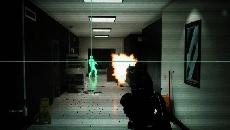 游戏玩法极具复古风格,作为主视点射击游戏,它模拟了机械战警头盔里的UI效果。按下特定按键,绿色扫描线会勾勒出敌人的轮廓,提示敌人的位置,方便玩家瞄准射击。战斗过程充满暴力元素,玩家可以用各种方式打击敌人,打爆敌人的头、用环境物品砸击,让场景布满敌人的鲜血,颇有B级片的风格。这种简单直接、充满爽感的玩法,让玩家仿佛置身于早期的射击游戏中,体验到纯粹的游戏乐趣。在一场激烈的街头巷战中,玩家利用扫描线精准锁定敌人,用手枪连续爆头,伴随着敌人的惨叫,尽情享受复古玩法带来的刺激。